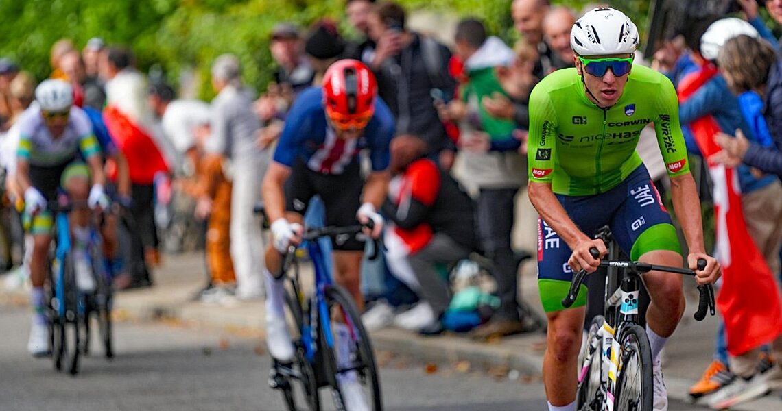 On the Zürichbergstrasse, Jan Christen continued the work of his Swiss teammates. He attacked with 50 kilometres to go. No one was able to follow him. Giulio Pellizzari chased on his own, while a group of 13 riders formed behind the Italian with 5 Belgians: Jarno Widar, Robin Orins, Emiel Verstrynge, Alec Segaert and Junior William Lecerf and one Dutchman: Del Grosso. Joseph Blackmore (Great Britain), Igor Arrieta, Iván Romeo (Spain), Niklas Behrens (Germany), Martin Svrček (Slovakia), Isaac Del Toro (Mexico) and Darren Rafferty (Ireland) also joined them. Mainly due to the work of the Belgians, they caught Pellizzari with just over 30 kilometres to go. Christen’s lead had increased to 50 seconds at the bell for the last lap. On the last time on the Zürichbergstrasse, Christen’s lead did shrink, due to an attack by Widar. The Belgian, together with Svrček and countryman Segaert, broke away. Segaert then rode for Widar. A few riders came back from behind: Blackmore, Del Toro, Behrens and Del Grosso. They hooked up with Widar, who gave it his all on the Witikonerstrasse. Segaert let the rest go and it too fast for Del Grosso.