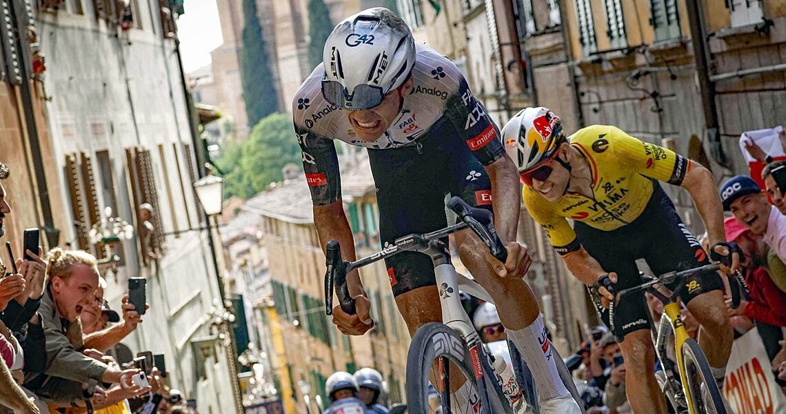 Recently Van Aert won seven stages of the Tour of Britain in 2021 and 2023, three stages in the Tour de France in 2022 and three stages in the Vuelta a España 2024. With Kuurne-Brussels-Kuurne, Omloop Het Nieuwsblad and the E3 Classic twice. On Sunday in the Piazza del Campo, where Van Aert won Strade Bianche in 2020, he was first again five years later. After a bit of a drought, the Belgian all-rounder adding the 9th stage of the Giro d’Italia. This was his fiftieth professional victory and he has now won a stage in every Grand Tour.