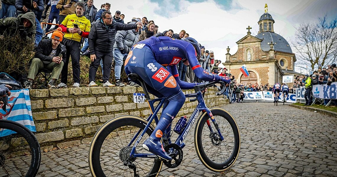 It was finished for De Lie, but many other riders were still able to follow. There was still a fairly large peloton in the run-up to the Muur van Geraardsbergen. Just before the cobbled climb, Tratnik disappeared from this group, the Slovenian punctured at the worst possible moment. At the front, Tim Wellens took the initiative on the first difficult sections of the climb, after which Mathias Vacek (Lidl-Trek) took over. The young Lidl-Trek rider kept the pace high. At the summit there was still fifteen to twenty riders. Among them Philipsen, several UAE riders and Van Aert, who attempted to get away on the flat. Tim van Dijke moved up, but the Dutchman didn’t take over. The race went quiet, after which Jorgenson and Wellens tried, but got nothing. The Bosberg was the next chance. Vacek did put pressure again, but he couldn’t create a gap. The first to get away, after the Bosberg, was Stefan Küng. The Swiss went solo as a TT specialist can. Matteo Trentin tried to cross on his own, but couldn’t get to him. Jorgenson closed the gap to the Italian as Küng gained more time on the group of chasers, which grew considerably. The dropped Pidcock was able to return. The peloton now consisted of around 50 riders. Visma | Lease a Bike took the initiative to put Van Aert in a position for a sprint win. But Küng still had 17 seconds. Just before the start of the final kilometre, Küng was pulled in. That meant that there would be a bunch sprint in Ninove. INEOS Grenadiers took the lead after the last bend, but the fast-finishers came up from behind. Jasper Philipsen and Paul Magnier started their sprint, but it was Uno-X Mobility’s Søren Wærenskjold who came up on the right side of the road to take the victory. Magnier finished in second place, Philipsen had to settle for third. Top favourite; Van Aert finished in 11th.