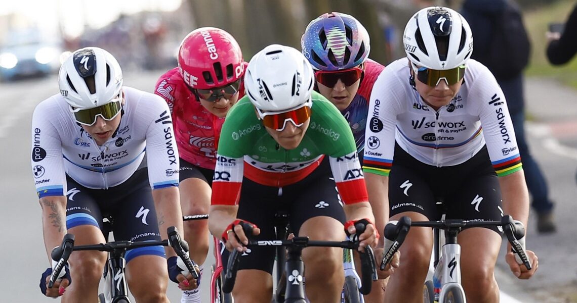 In the last few hundred meters Kopecky took the lead, with Wiebes on her wheel. The World champion did an extremely long lead-out. At about 250 meters from the finish line it was Wiebes, who had a strong jump. She immediately took the lead and kept the rest behind her with apparent ease. She took her hundredth professional victory. Elisa Balsamo was able to hold her wheel, but couldn’t come round. The Italian was second, ahead of Charlotte Kool.