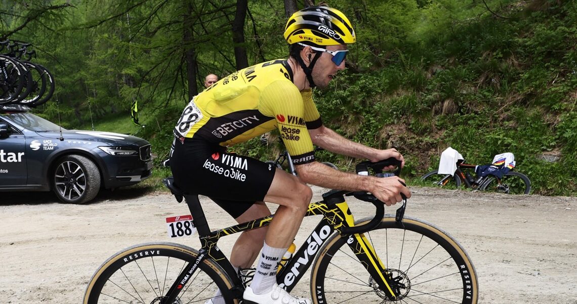 The lead of the escapees increased again to the start of the Colle delle Finestre, up to 10 minutes. Among the leaders, at the front there was a duel between Van Aert and De Bondt at the intermediate sprint. Van Aert won, but De Bondt was second and Pedersen didn’t get involved. The Dane then went on the front for his teammate, Carlos Verona on the first kilometres of the Finestre. Pedersen’s work helped Verona, Bilbao and others to break away.