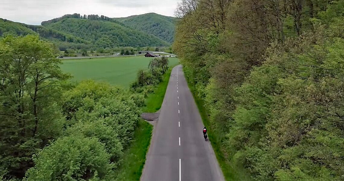 The video begins showing the riders assemble for the start in Bratislava. Something unusual is that somebody brought a fishing scale and was weighing the bikes with packs. One of the women was chagrined to learn her setup weighed in at 19 kgs, with most seeming around 15 kg or so. After getting their trackers and final words of encouragement from the organizers the countdown began and the group headed out through the city before the first hills would break up the peloton. Then it would be every man and woman for themselves.