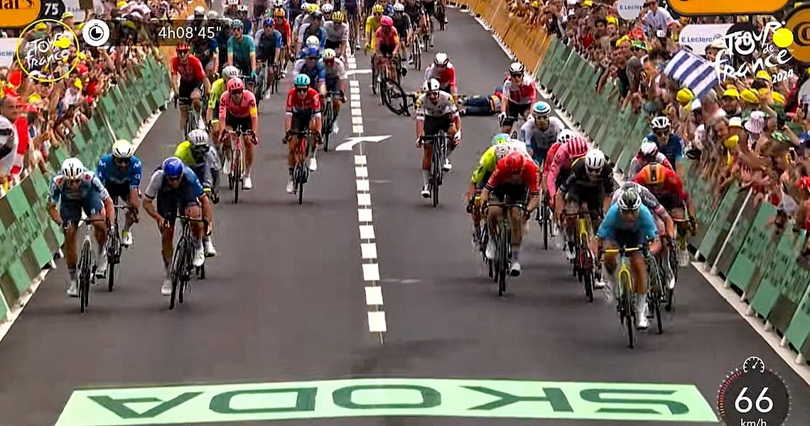 35 stages won and we are barely halfway through the video. The next chance for Cav came on Stage 12 but things fall apart as Morkov cannot start due to COVID and teammates get caught up in crashes. Cavendish must a hard effort, finishing fifth but relegated for failing to hold his line.