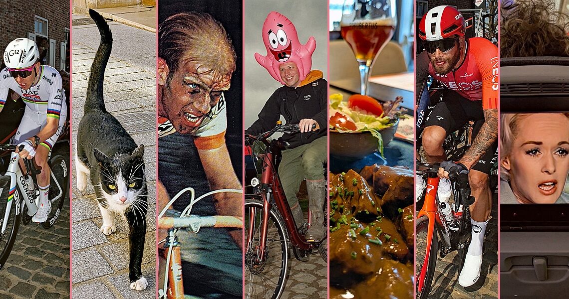 John Thomson sez: “This is my “Special 2025 Holy Week” photo gallery. It includes shots from the Oude Kwaremont at the Tour Flanders, the Scheldeprijs and the Carrefour de l’Arbre at Paris Roubaix. Also including cars, kids, dogs, beers, two cats, two legendary female photographers, a bit of museum culture from Belgium and France, champions from the past and a few scans from my magazine collection.”